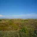Direction la pointe de Skagen. C’est noir de touristes, et nous roulons toujours sous un cagnard costaud. Puis nous bifurquons vers l’Est où l’on tombe sur un super shelter avec vue sur la mer et même des WC dans un ancien moulin à une 100aine de mètres !